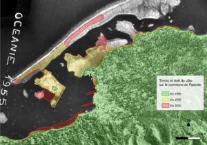 Te inera’a o te pae tahatai o Pape’ete mai te matahiti 1955 e 2016 atu, o tei fa’a’ite mai i te ’ā’ano o te fenua ’āpī i noa’a mai i ni’a i te tairoto i nā au’ahuru matahiti matamua o te CEP, e ’oia ato’a rā te fa’anaho-vauvau tāmau o te ārea e tae roa mai i teie mahana. B. Furst, ia au i te mau hoho’a-pata māreva (SPAA)