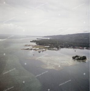 Te uāhu nō Pape’ete e hāmanihia ra (1965), mā te mau fa’a’īra’a o te a’au tua e Motu Uta e vai maori mai nei ’ei patu-hāmani-roa-hia, mā tē ’itehia ā rā te mau hiti tumu e te aru i rōpū i te mau fa’anaho-vauvau. Hoho’a-pata : A. Sylvain (Banque de l’Indochine, Archives historiques de Crédit Agricole sa).